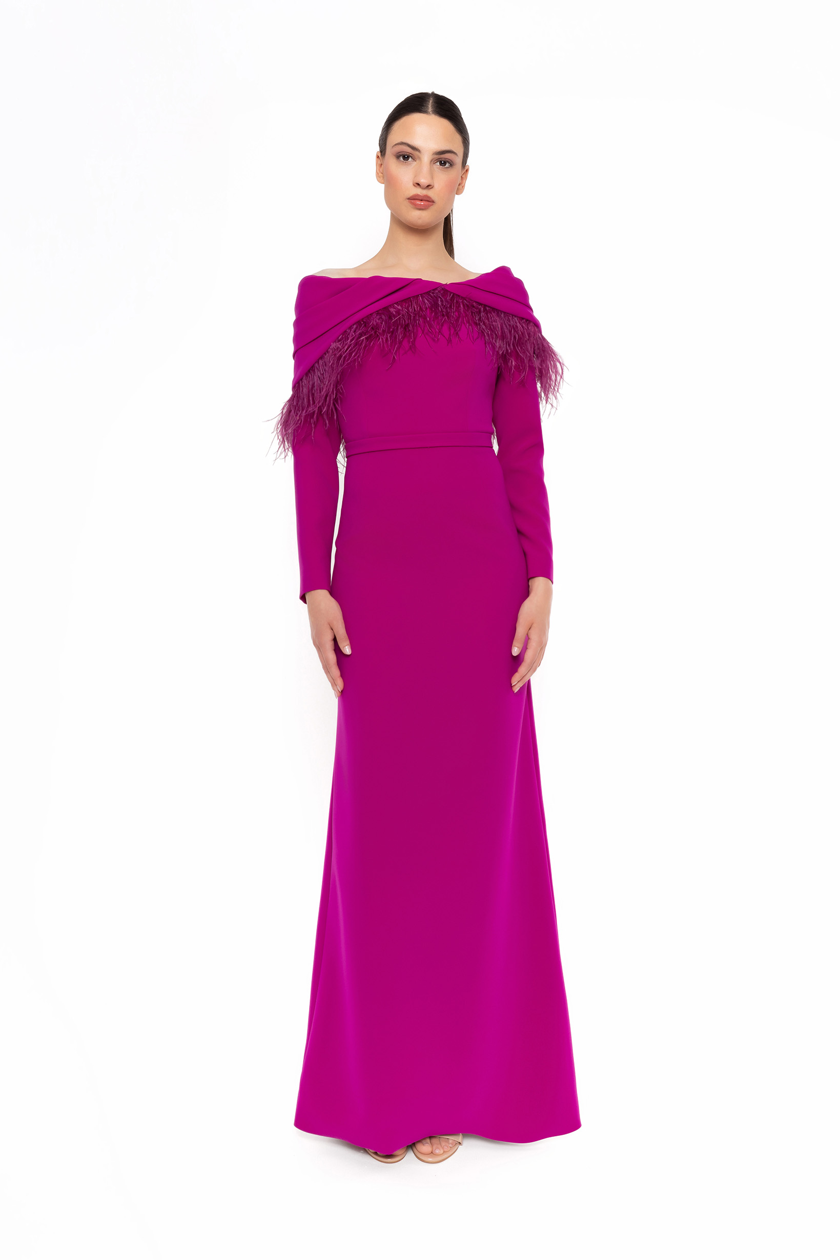 Vestido madrina plumas largo