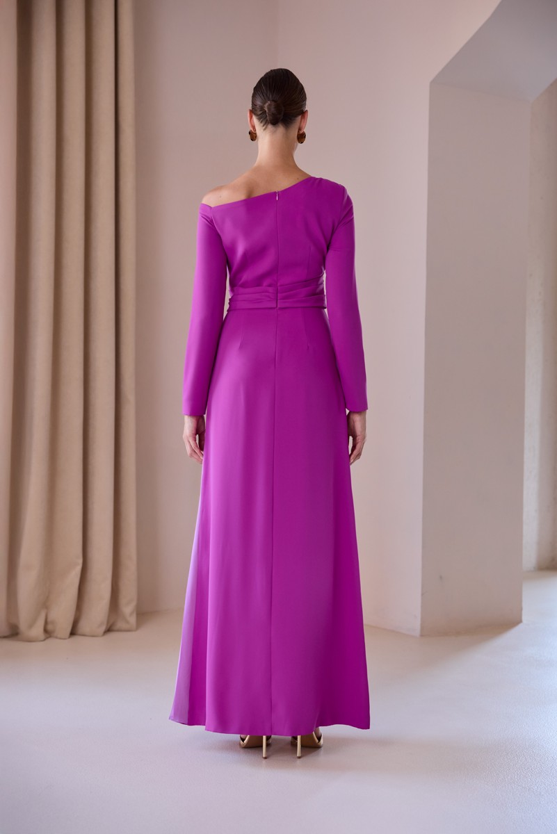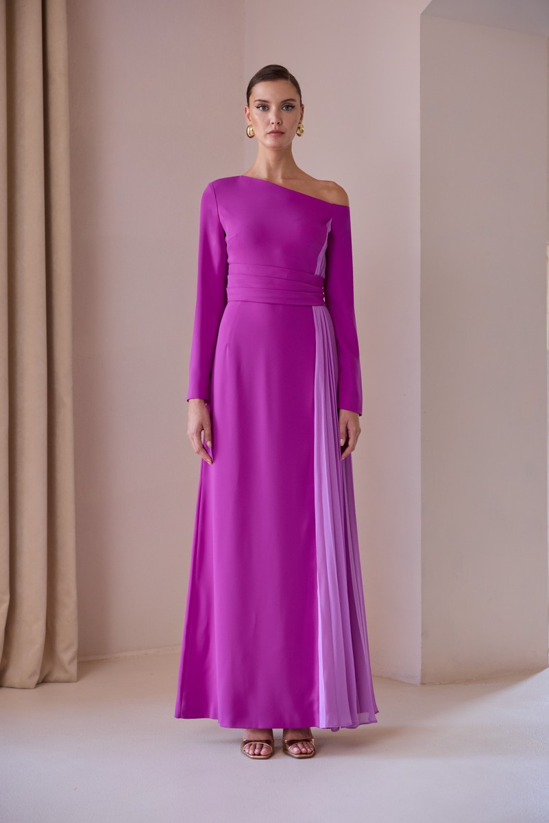 Vestido largo de crepe bicolor.