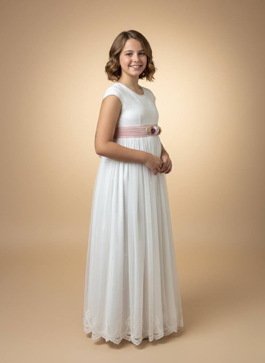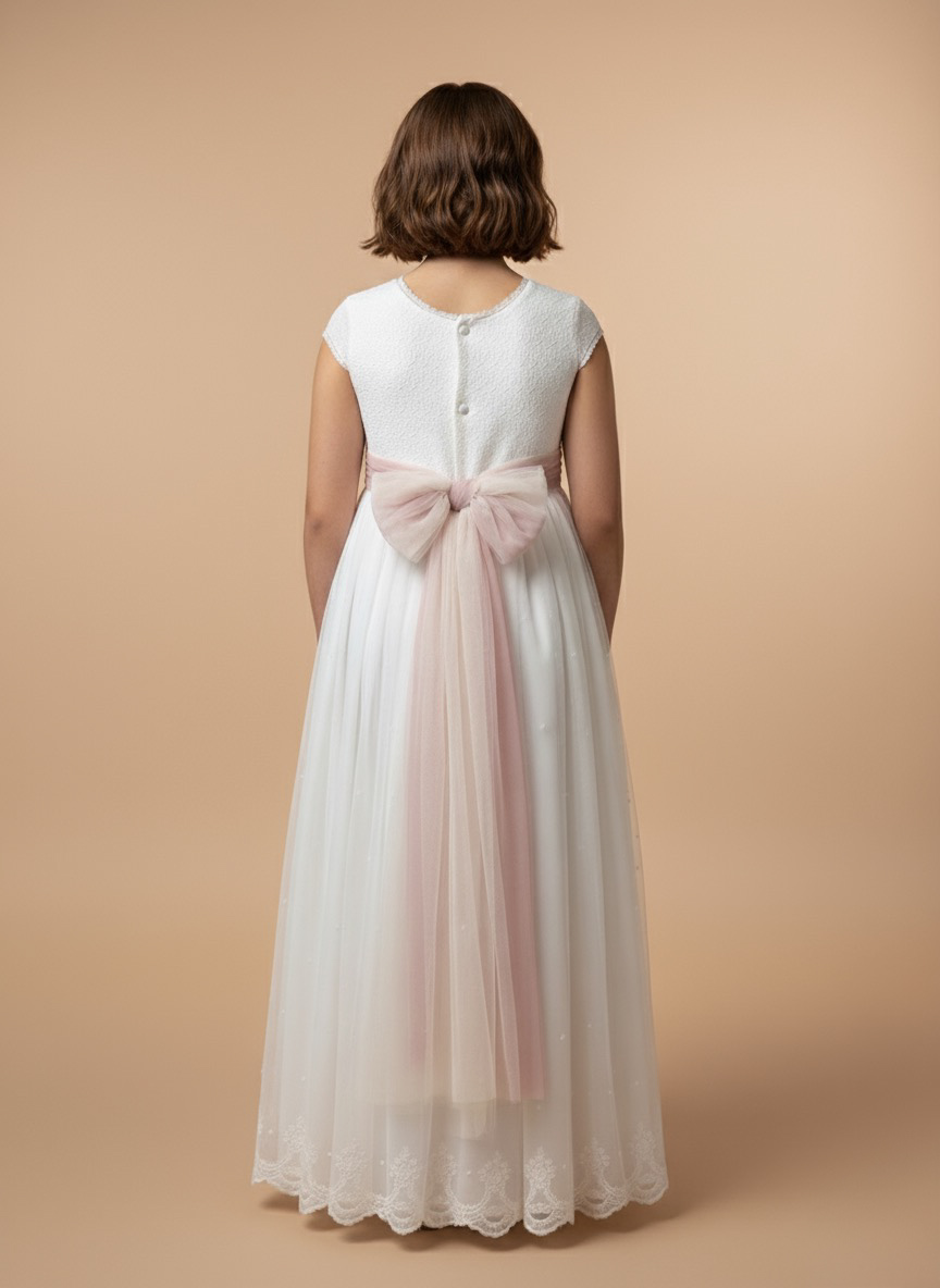 VESTIDO DE COMUNIÓN CON CUERPO EN CASCADA
